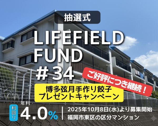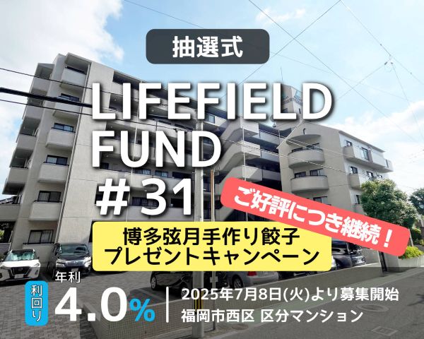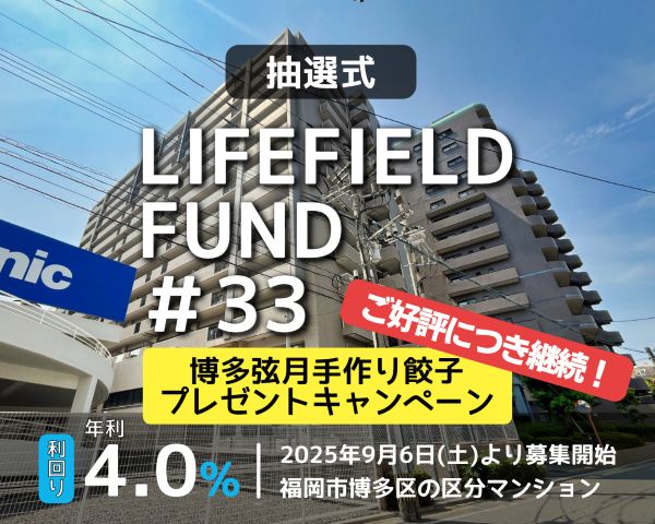 福岡県の区分マンションを取り扱っています。 日本保証の保証付で、リスクは抑えられています。 ファンドも月1で組成され、投資しやすいです。