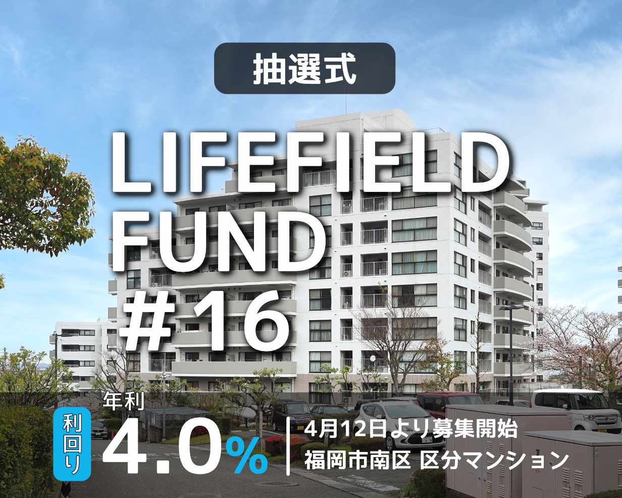 福岡県の区分マンションを取り扱っています。 日本保証の保証付で、リスクは抑えられています。 ファンドも月1で組成され、投資しやすいです。