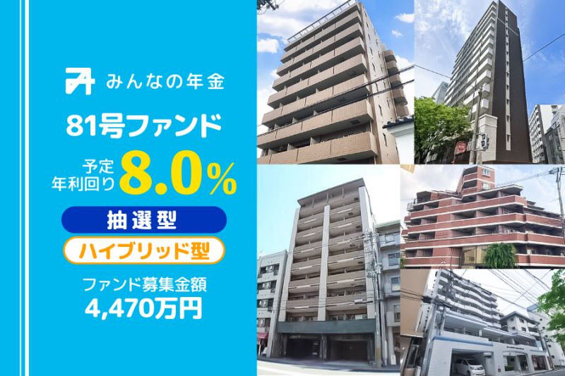 みんなの年金は不動産投資ファンドです。 一口10万円と少し高額ですが、利回りは高めです。ただ、ファンドの募集口数が少なく、投資したいと思ってもなかなか投資ができません。 分配が細かく行われるのは嬉しいポイントです。もう少し募集口数が多く投資しやすければ良いなと思います。