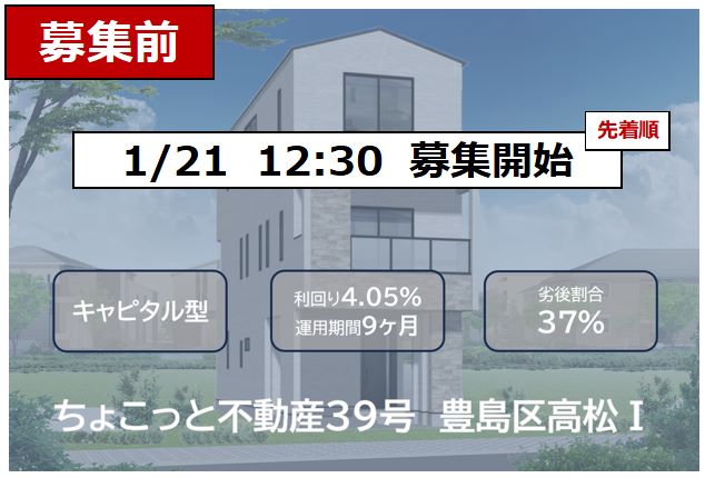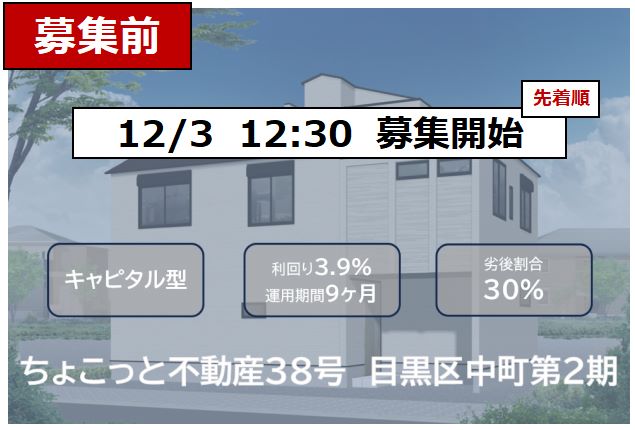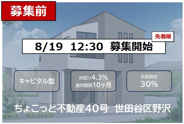 都内の自社開発の戸建て住宅がメインです。 劣後出資比率が高く設定されており、安心感があります。