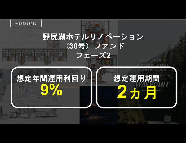 利回りが安定しているため安心して投資できました。現在も箱根温泉付き保養所再生ファンドに投資してますが、報告もきちんとあって安心です。