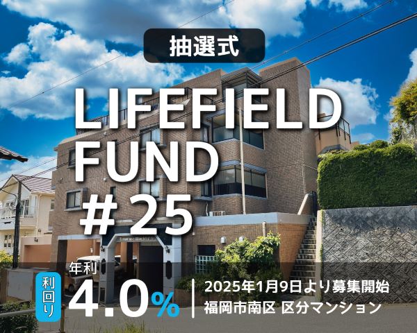 福岡県の区分マンションを取り扱っています。 日本保証の保証付で、リスクは抑えられています。 ファンドも月1で組成され、投資しやすいです。