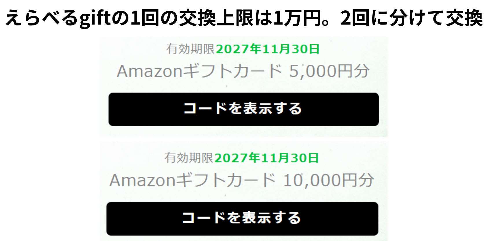 筆者はえらべるpayを介して、Amazonギフト券に交換しました。(簡単作業でOK)