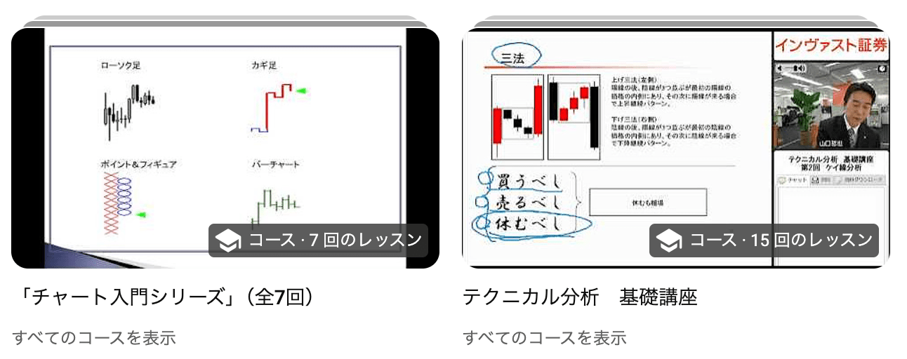日本の金融庁に認可されているインヴァスト証券では、以下のように動画でFXを無料で学べます。