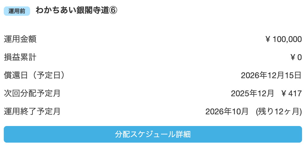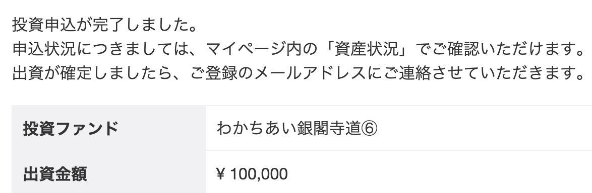 - ・私は最新ファンド「銀閣寺道⑥」に10万円投資した