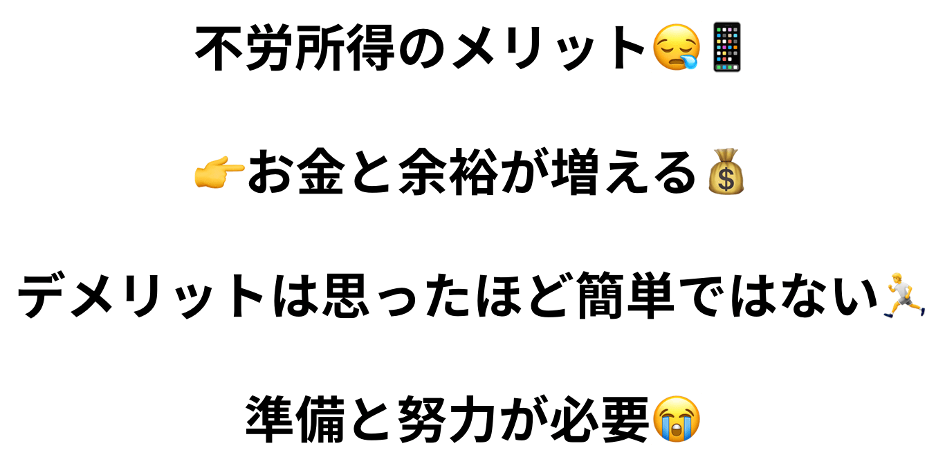 - ・不労所得=「完全放置」ではなく、初期投資・努力・維持が必要