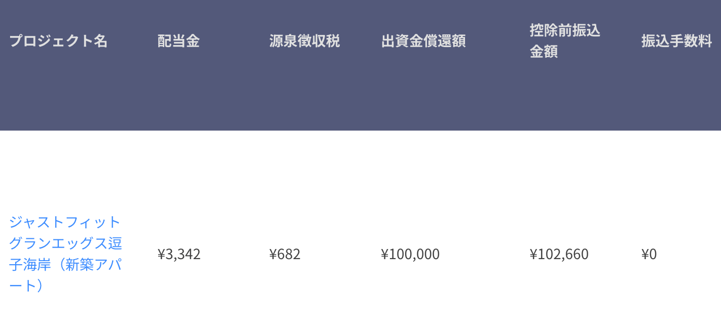>> ジャストフィットのファンドを調査!デメリットは何?なお、過去にジャストフィットで投資したファンドでは想定通り無事償還され、配当ももらえました。