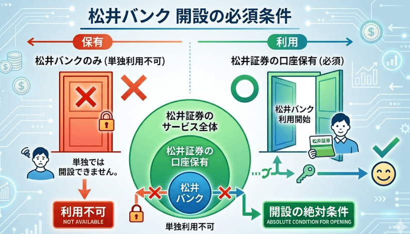 - ・松井証券口座の開設が必須:銀行単体での契約ができず、証券口座の開設・維持が前提となる