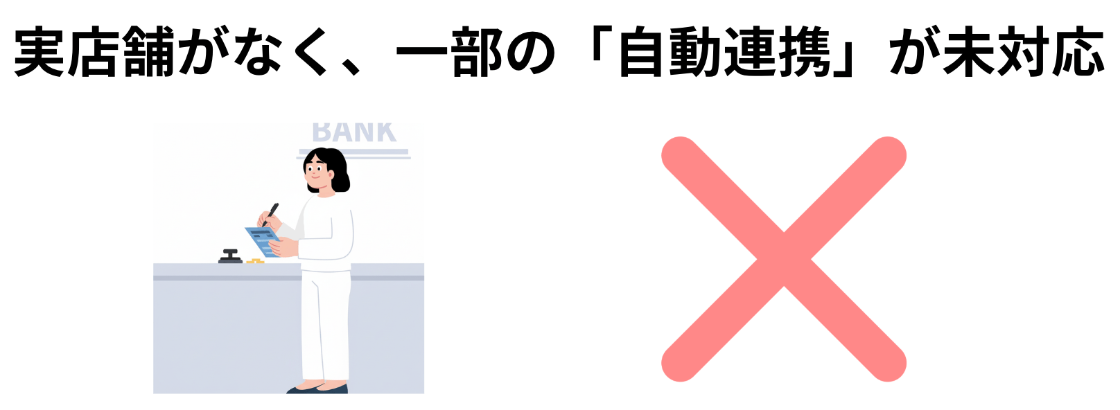 - ・実店舗や紙の通帳が非対応:対面相談はできず、紛失時なども含め全てオンライン完結の必要がある