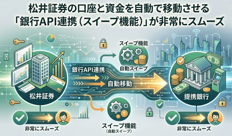 松井証券の口座と資金を自動で移動させる「銀行API連携(スイープ機能)」が非常にスムーズです。