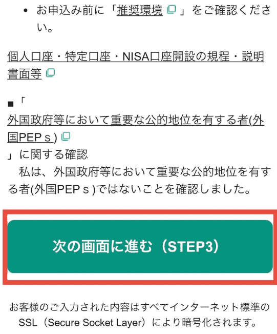 入力完了後「次の画面に進む(STEP3)」をタップします。