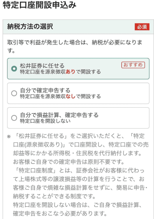 - 松井証券に任せる(特定口座:源泉徴収あり)