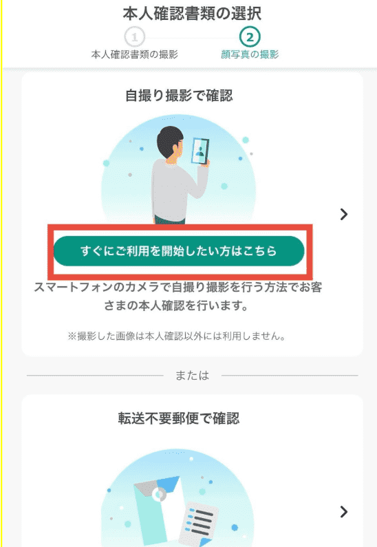 もっとも早いのは、スマホを利用したeKYCでの申し込みです。
