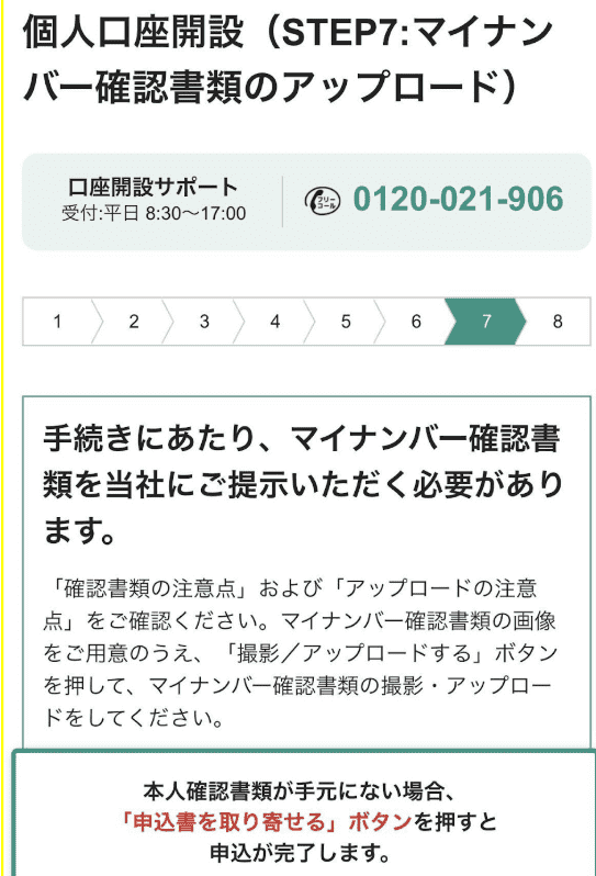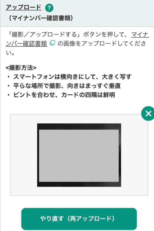 画像アップロード・郵送での申込みの場合は、マイナンバー確認書類を別途アップロードまたは郵送します。