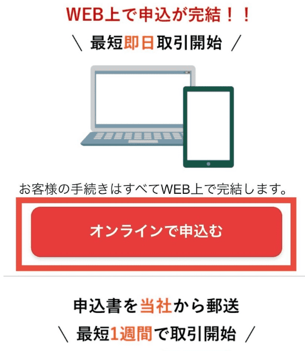 eKYC申し込みは、最短即日の口座開設が可能です。
