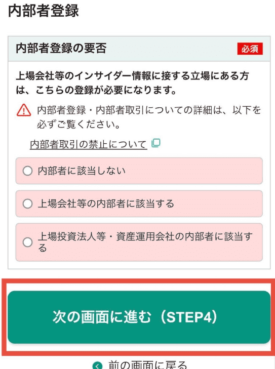 上場企業などのインサイダー情報に接する立場にある方は、内部者登録が必要です。
