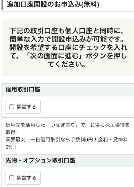 同時に開設できる取引口座もあるため、必要であれば「開設する」を選択しましょう。