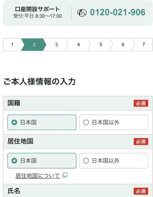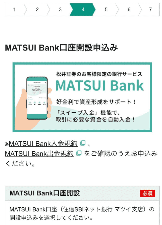 口座開設申込み完了後、各口座の開設申込画面に移管するので手続きを進めます。