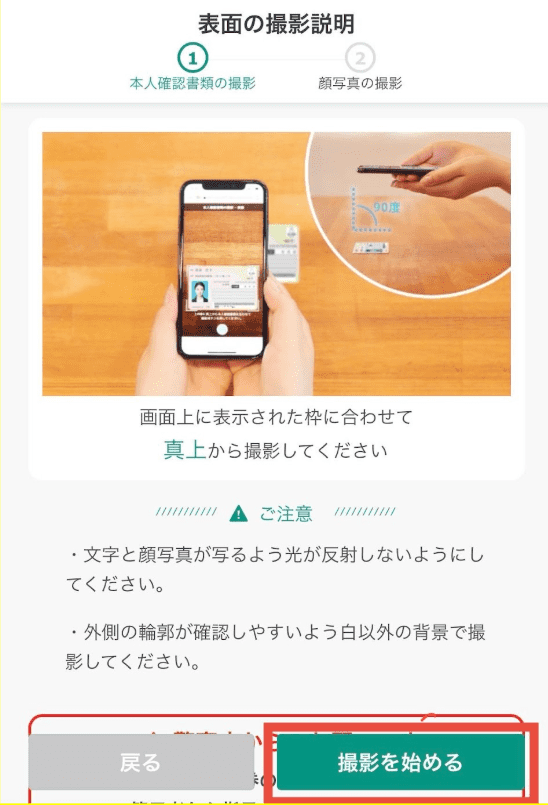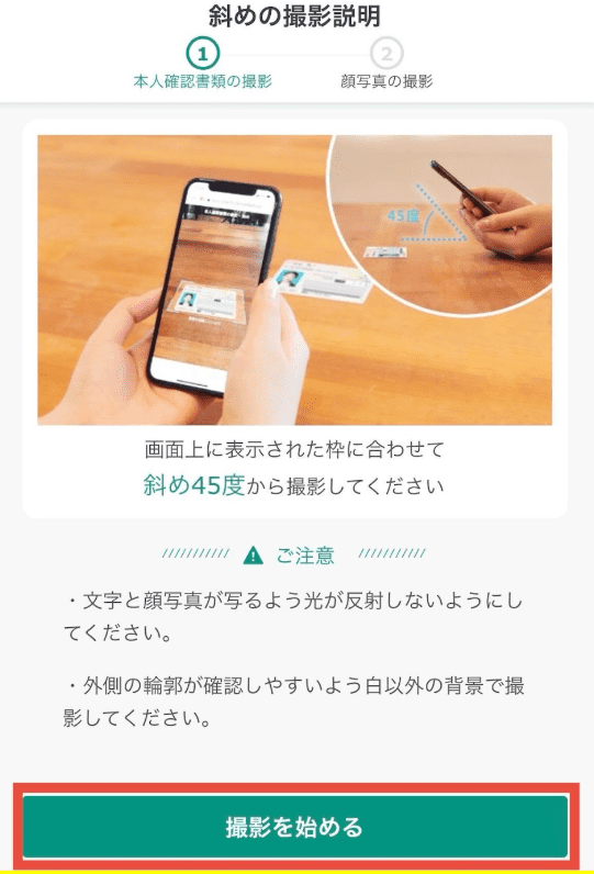 マイナンバーカードの場合は、表面を真上からと斜めからの2回撮影します。