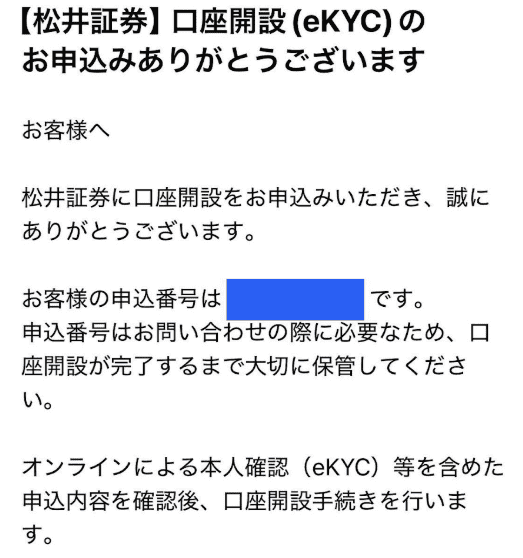 eKYCで申し込みした場合、登録したメールアドレスに「口座開設完了のお知らせ」が届きます。