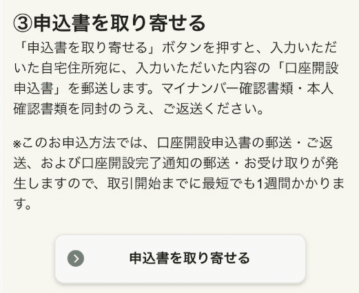 郵送での手続きは「申込書を取り寄せる」をそれぞれタップします。