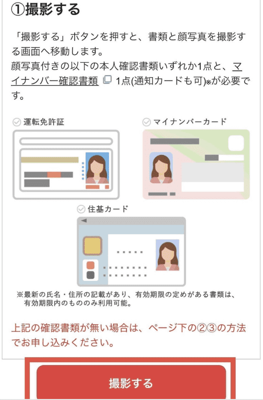 - 本人確認書類と入力内容(氏名・住所・生年月日)が完全に一致している