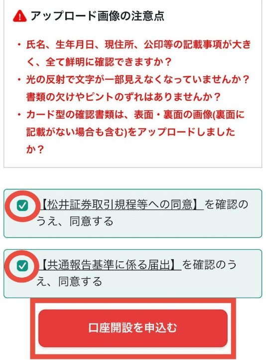 スムーズに口座を開設できるよう、入力ミスや画像の不備に注意しましょう。