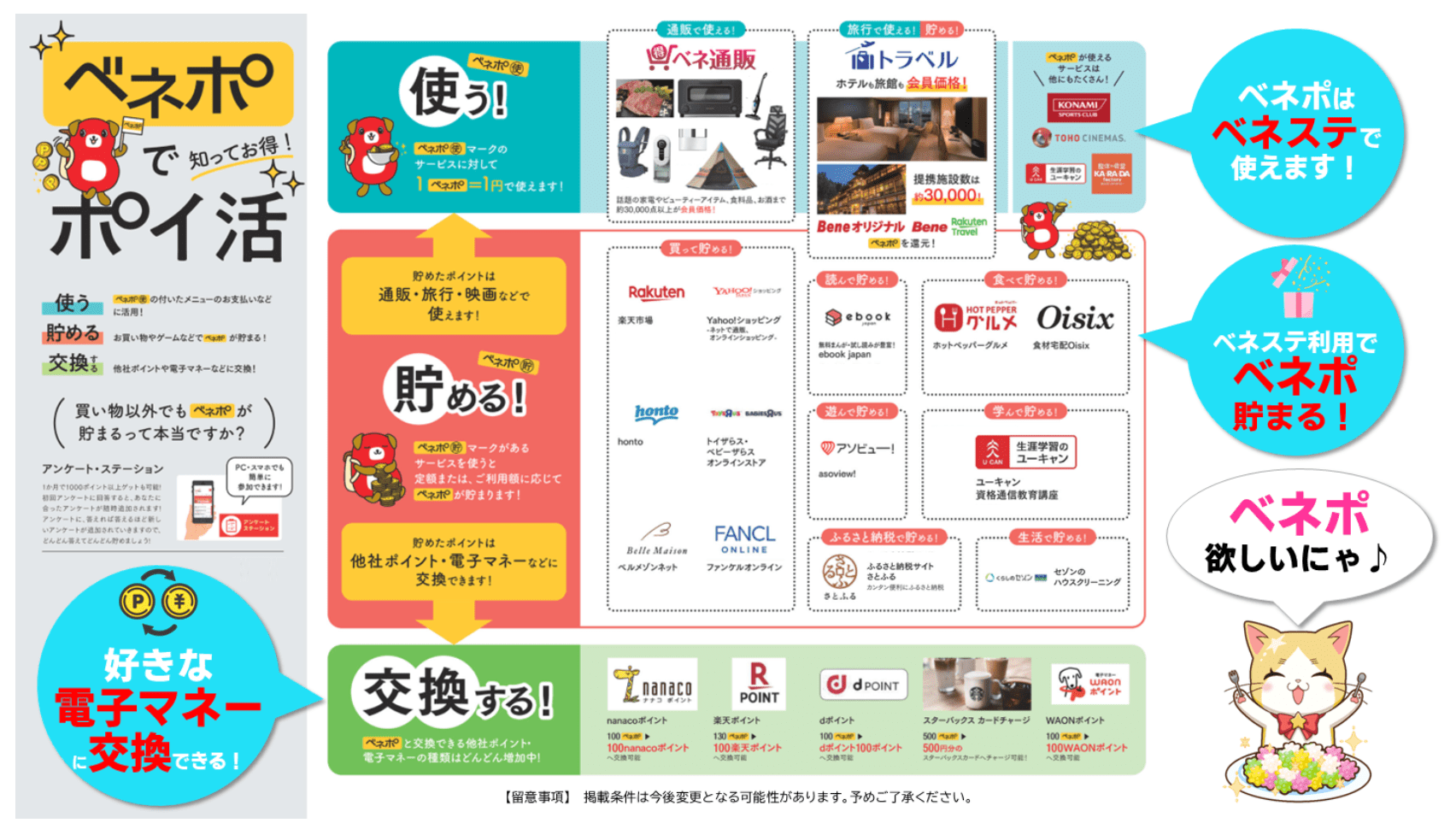 ベネポなどのポイントは、交換レートの改定や有効期限の設定が行われる場合があります。