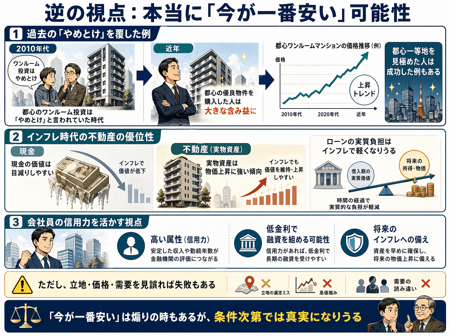 会社員などの「高い属性(信用力)」を活かして低金利で融資を受け、将来のインフレに備えることは合理的な戦略です。