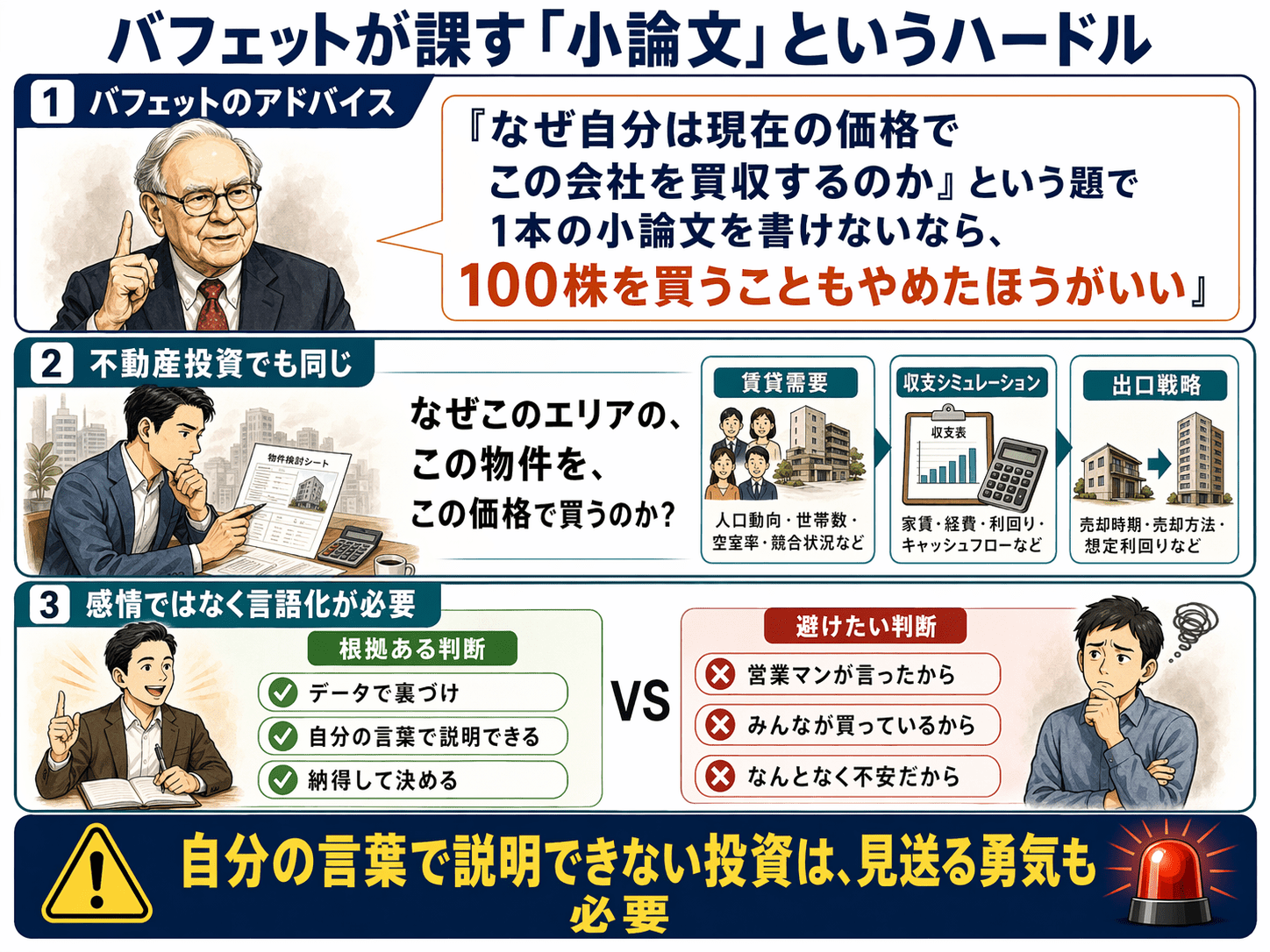 「『なぜ自分は現在の価格でこの会社を買収するのか』という題で1本の小論文を書けないなら、100株を買うこともやめたほうがいい」