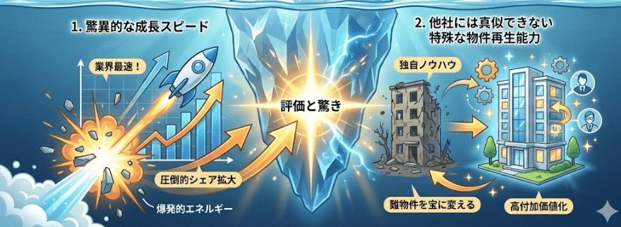 さらに、他社には真似できない特殊な物件再生能力への評価も含まれています。