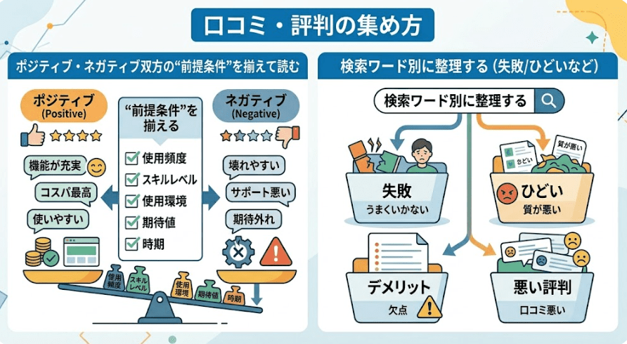 SNS・掲示板・ブログ体験談の注意点:再現性/属性/時期の確認