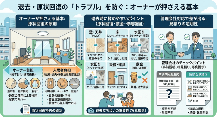 退去・原状回復の「トラブル」を防ぐ:オーナーが押さえる基本