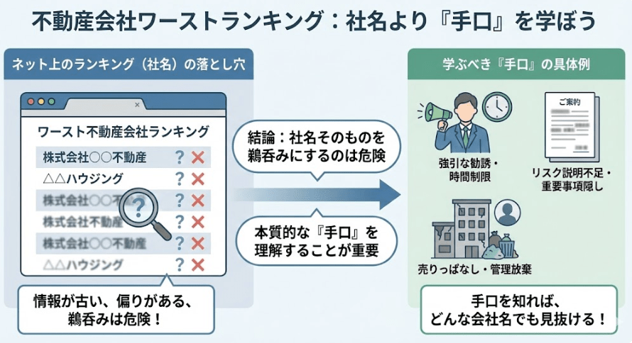>> 【無料】Amazonギフト券もらえる不動産投資会社12選!面談キャンペーンがお得結論:不動産会社ワーストランキングでは「社名」より「手口」を学ぶ
