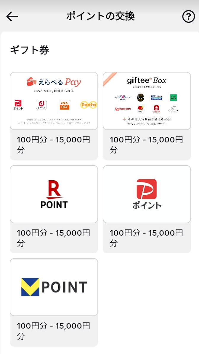 えらべるPay経由では一部の交換先で差が生じることがあります。