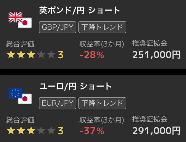 ユーザーは、過去の成績や必要資金を見ながら、気になる戦略を選ぶだけで自動売買をスタートできます。