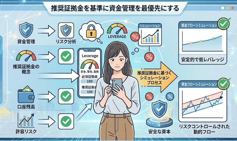 システムが提示する「推奨証拠金」をしっかり守り、余裕を持った資金管理が重要。
