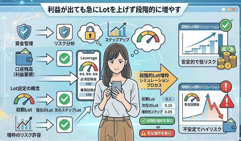 稼ぐコツ5:利益が出ても急にLotを上げず段階的に増やす