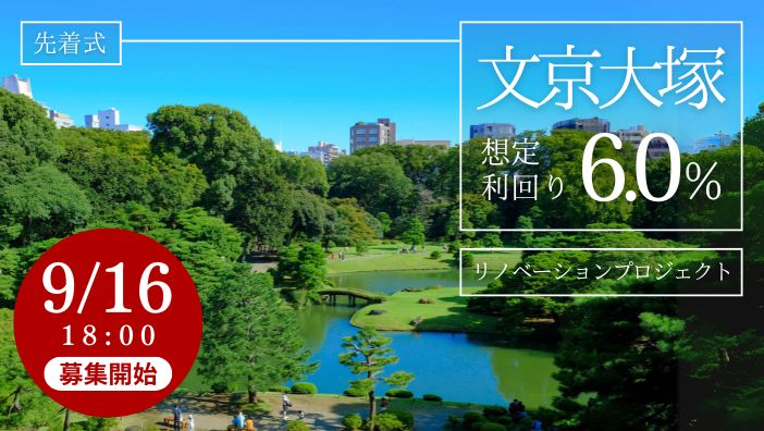 都心部の区分マンションのリノベーション案件を中心に扱っています。 場所は一等地のため、リスクも抑えられています。 利回りも比較的高めで、投資しやすいかと思います。