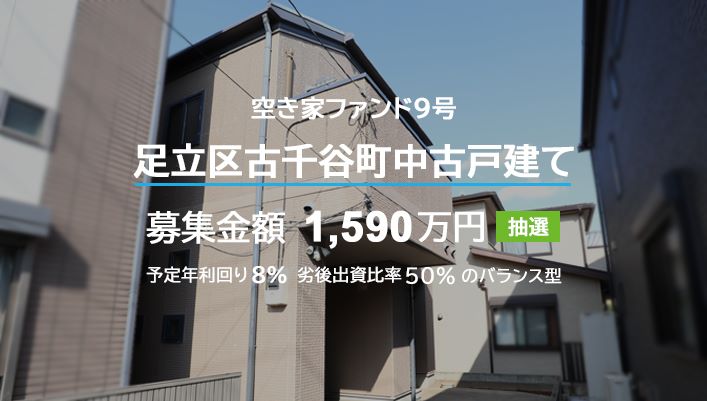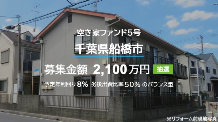 関東圏の空き家ファンドを扱っています。 利回りも高く、リスクとリターンのバランスも良いと感じます。