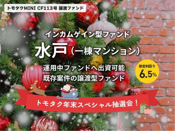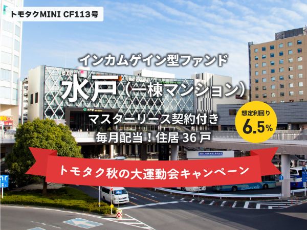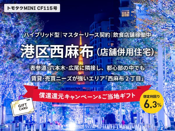 トモタクCF57号(井草)に一口投資しました。Amazonギフト券がもらえるなどキャンペーンも魅力的です。